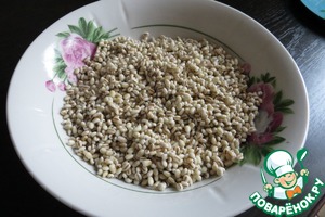 Итак, перловую крупу тщательно промываем, заливаем водой и оставляем на ночь. Утром воду сливаем. -