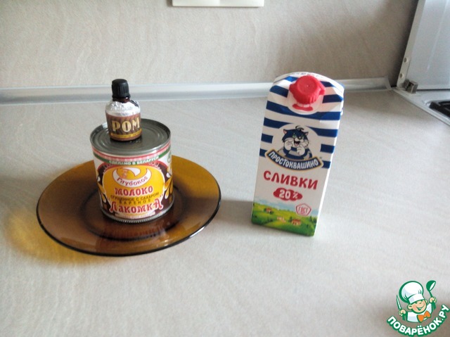 Достаем продукты из холодильника. Сливки 20 %!!! Молоко сгущенное ВАРЕНОЕ без растительных добавок (поддержим белорусского производителя). Ароматизатор… (можно без него, а можно вместо него каплю алкоголя ).