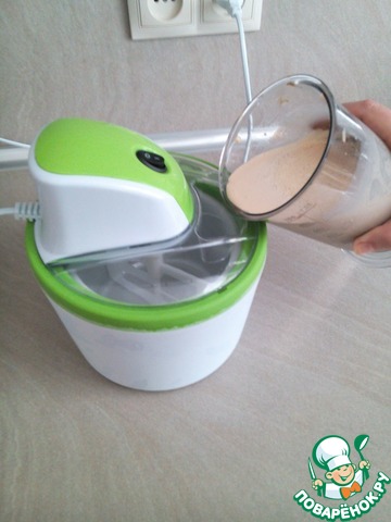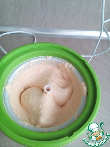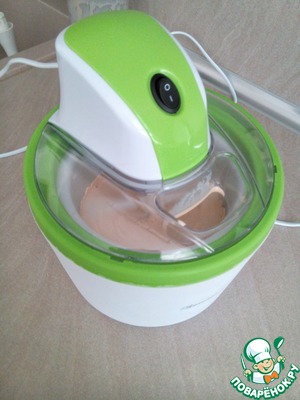Теперь включаем мороженицу, выливаем смесь и ждем 15-20 минут ….