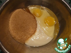 Йогурт, яйца и сахар Демерара ТМ "Мистраль" смешать, хорошо взбить миксером (или венчиком).