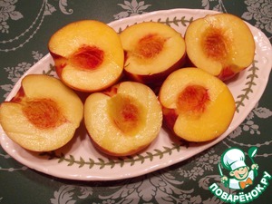Персики нарезать половинками, удалить косточки.