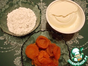 Курагу залить кипятком, оставить на 10 минут. Просушить, нарезать мелкими кубиками.