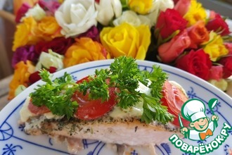 Готовую рыбу уложить на тарелке и перед подачей полить соусом, приятного аппетита.