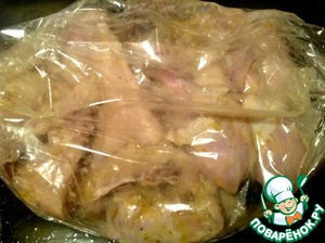 Отправляем курицу в рукав для запекания. Маринад не выкидываем- он нужен для соуса.