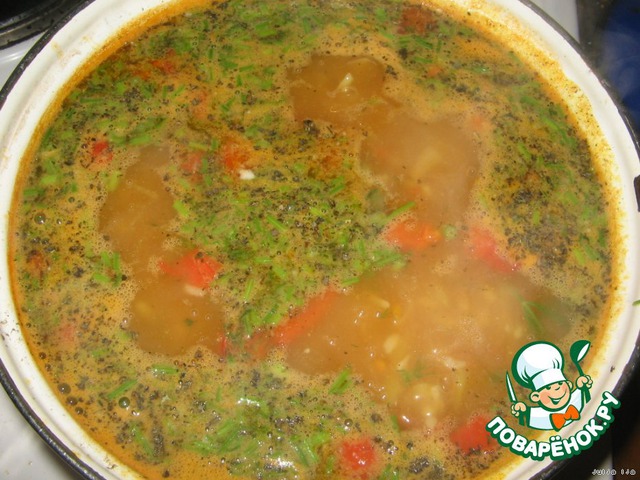 Посыпаем супчик кинзой. Даём настояться минут 30 минимум и подаём к столу.