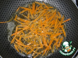 Варим бульон. Пока он варится, подготовим овощи. Нарежем морковь длинной соломкой.