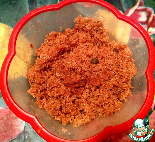 Пока варится смесь приготовим заправку со специй. Смешиваем сахар обычный, сахар тростниковый, соль, яблочный уксус. Добавляем душистый перец, острый красный перец, гвоздику, имбирь. Заправку закрываем крышкой и оставляем ждать "своего часа".