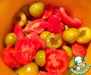 Обдаем помидоры кипятком на 30 сек и снимаем кожуру. Режем на несколько крупных частей. Сливы очищаем от косточек (если кожура у сливы толстая, то и ее лучше очистить, у меня были с тонкой - я решила оставить).