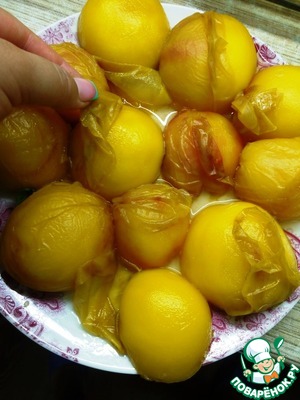 Очищенные персики накрываем пленкой и выдерживаем несколько часов при комнатной температуре.