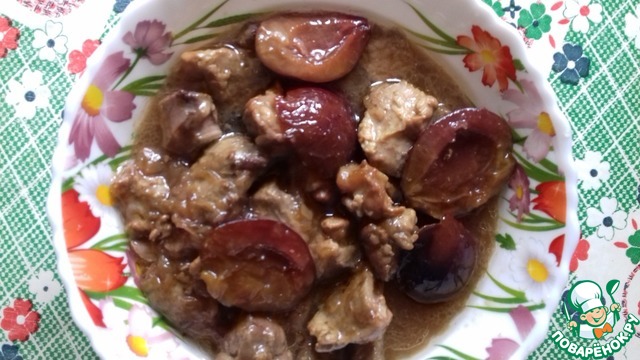 А просто, целым куском, обжарить (чтобы все соки внутри остались) и запечь в духовке, обогатив при этом соками лука и слив - решение, достойное шеф-повара!
