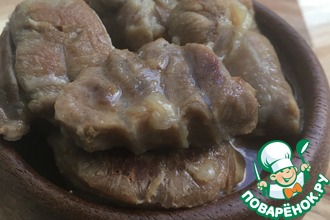 Вот и дошагала я до юбилейного 100 рецепта!!! Так как наша семейка обожает мясо во всех его видах, то конечно же этот юбилейный рецепт будет восхитительного, ароматного и сочного мяса! Которое приготовлено в интересной посуде, подаренной мне подружкой aleksandra_kapysh. Готовим с любовью, и радуем близких!