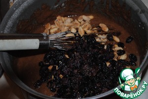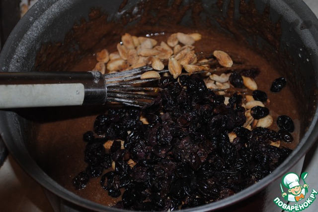 Добавляем в конце орехи с изюмом, тщательно перемешиваем