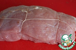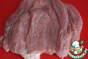 Теперь очередь заняться мясом. Кусок свинины (еще хорошо такой рулет делать из филе индейки) разрезать книжкой или по спирали, нам нужно из него сделать пласт.