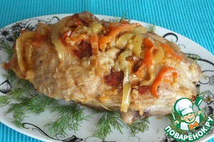Многие уже наверно привыкли к сочетанию мясо+фрукты, я очень люблю такие сочетания и поэтому с удовольствием приготовила этот вкусный рулет. Настоятельно рекомендую приготовить, получилось вкусно, сочно, нежно.