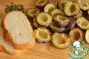 Начнем с приготовления начинки. Сливы помыть, освободить от косточек и разрезать пополам. С тимьяна оборвать листочки.