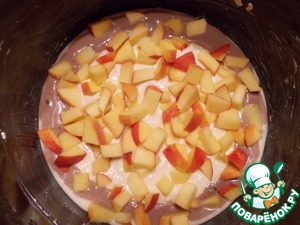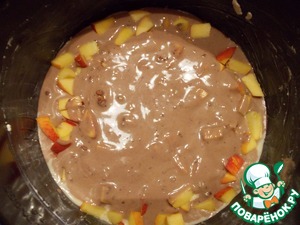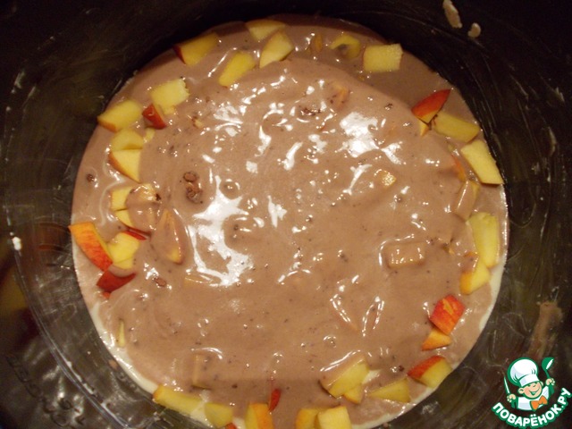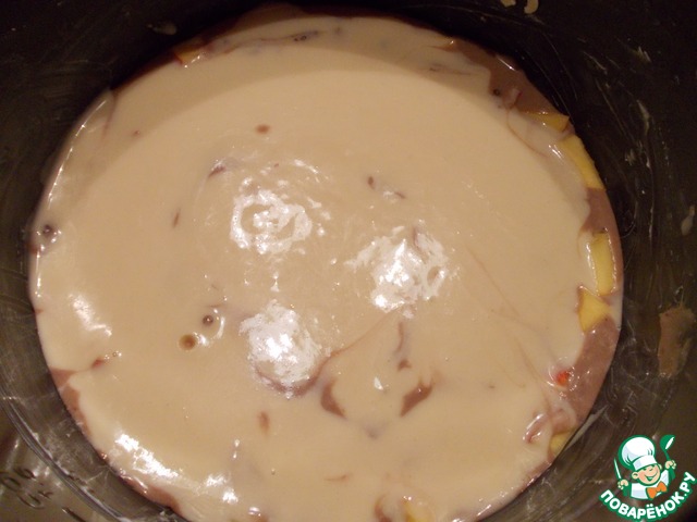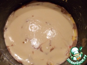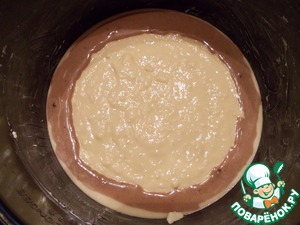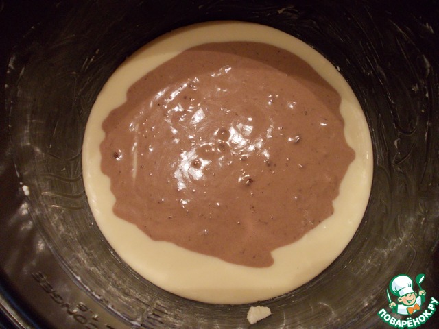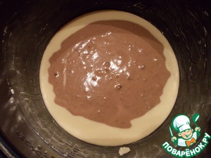 Чашу мультиварки смазать сливочным маслом. Вылить в нее половину белого теста.