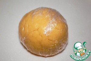 Готовое тесто собрать в шар, завернуть в пищевую пленку и убрать в холодильник на 1 час.