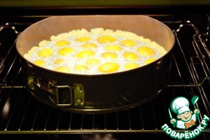 Тесто раскатать и выложить в форму, закрыв дно и бортики. Влить сметанную заливку, затем выложить абрикосы, немного утапливая их в заливке. Выпекать в предварительно разогретой духовке, при температуре 180 градусов 30-35 минут.