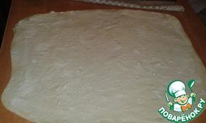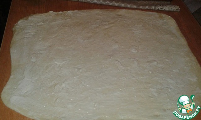 Раскатываем тесто в прямоугольник, высотой где-то 5-7мм
