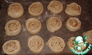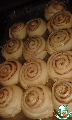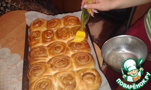 Итак, готово! Достаем наши горячие ароматные румяные булочки из духовки и пока они горячие обильно смазываем сиропом ( очень важно, чтобы сироп просочился вглубь завитков- тогда изделие будет пропитанным и не сухим!)