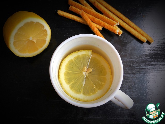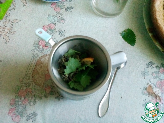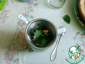 Для начала заварим зелёный чай с добавлением измельчённой мяты и кусочка лимона.