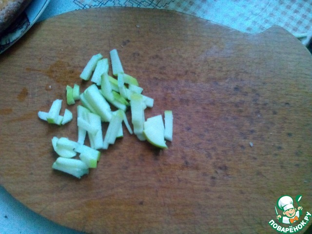 Мелко нарежем половинку яблока.