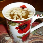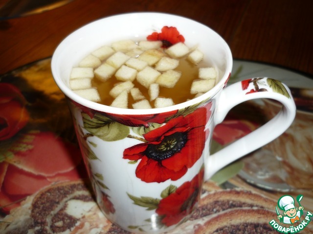 Теперь нальём в эту чашку наш чай. У меня он получился мутным из-за корицы (лучше корицу брать в палочках)
