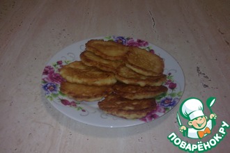 Оладьи лепим руками, сначала скатываем в шар, а затем прижимаем руками и получаются своего рода биточки. Разогреваем сковороду с толстым дном наливаем 2 ст. ложки масла и выкладываем наши оладьи.