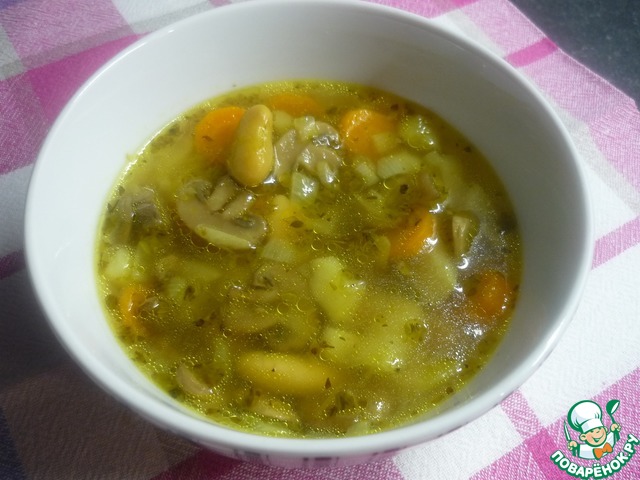 Ингредиенты для «Постный суп с грибами и фасолью»: