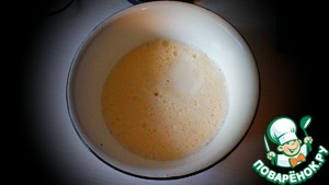 Во второй миске смешиваю яйца, сливочное масло и лимонный сок, заранее разведенный в воде. Взбиваю блендером.