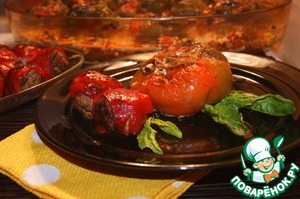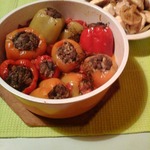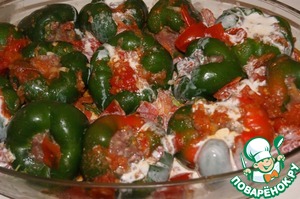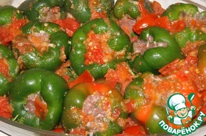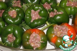 Тщательно перемешать. Очень плотно нафаршировать перец, из которого удалить семена.