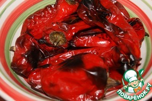 Плотно накрыть перец фольгой и запечь в прогретой до 190-200"С духовке до готовности, у меня запекался около часа. Ориентируйтесь на вашу духовку!!!