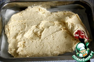 По поводу муки ничего не могу "исправить" и порекомендовать, т. к. рецепт - нем. и мука у меня - тоже нем., так что вот такие пропорции. Но тесто - густое получается, выкладывается, как размягченное масло. Оно не должно быть чисто бисквитным... скорее песочно-бисквитное. А остальное - по вкусу, конеШнА