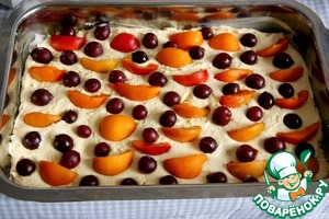 Рецепт «Пушистый пирог с абрикосами и крыжовником»: