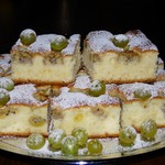 Жаркий август предлагает комбинировать созревшие ягоды и фрукты в необычных сочетаниях. Этот пирог можно готовить, как с абрикосами, так и с персиками, а сочетание с крыжовником не просто освежит, но и удивит! Основа пирога - с "изюминкой", с добавлением марципановой массы. Буду рада, если Вам пригодится такой интересный рецепт.