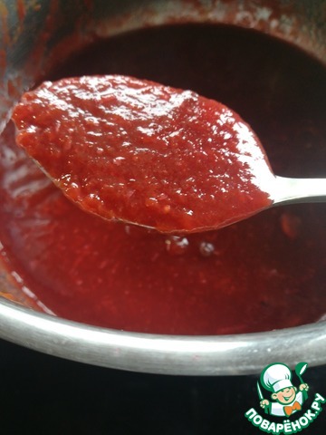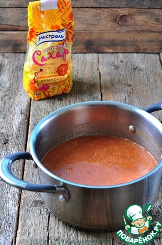 Спустя время, соус следует процедить через сито, перелить обратно в кастрюлю, закипятить, разлить в стерилизованные банки, закрыть крышкой, перевернуть, накрыть махровым полотенцем и оставить до полного остывания.