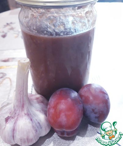 Пробить блендером сливы до однородной массы. Поставить на плиту и готовить 30 минут на медленном огне, постоянно помешивая, чтобы соус не пригорел. Добавить чеснок, пропущенный через пресс, готовить еще 15-20 минут.