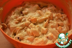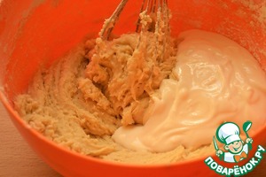 Перемешиваем, добавляем фруктовый йогурт. Тесто достаточно густое.