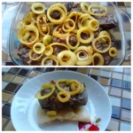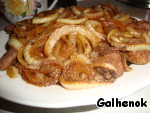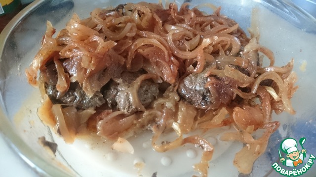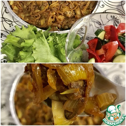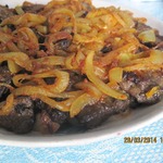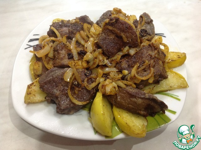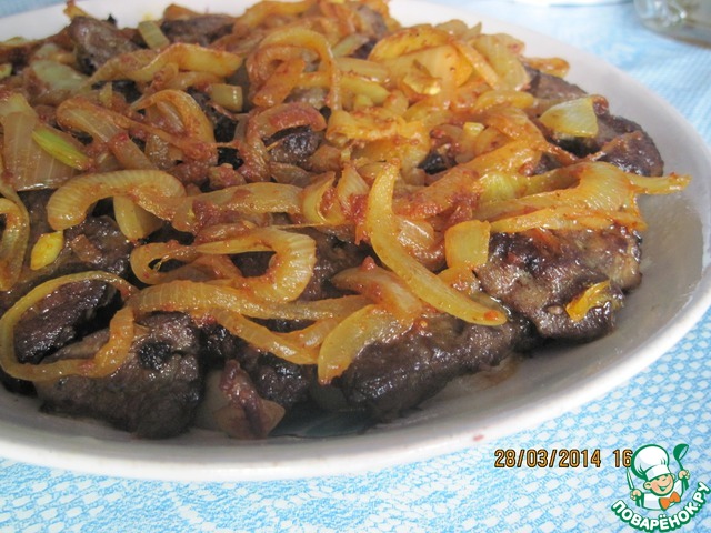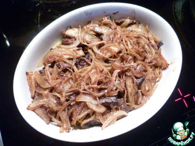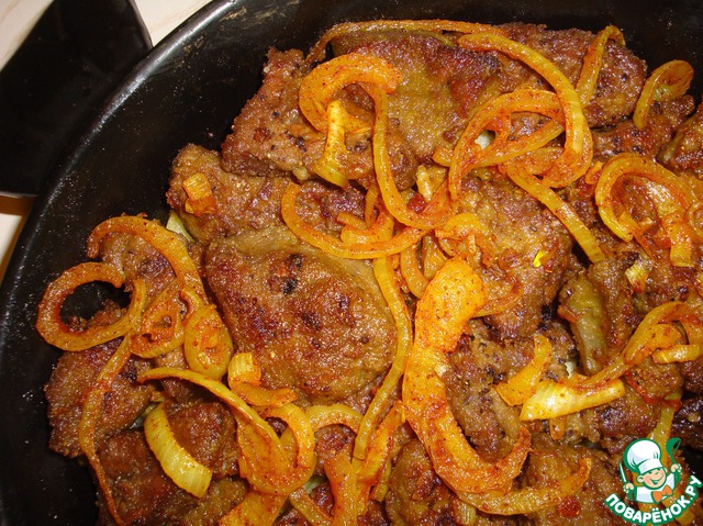 Этот рецепт один из моих любимых, очень вкусное, красивое, оригинальное блюдо, легкое в приготовлении. Поверьте, его едят даже те, кто не любит печень (получив вчера пустую тарелку из-под внушительной горки этого блюда, спросила у мужа: Ты же не любишь печень??? Ответ: но это же очень вкусная печень... ). Источник: мой блокнот.