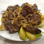 Печень (у меня была говяжья) нарезаем порционными кусочками, отбиваем через пленку, обволакиваем в муку, жарим на растительном масле, когда одна сторона подрумянится, солим, перчим, и тогда переворачиваем (так печень будет еще нежнее, чем если солить сразу). Снимаем на бумажное полотенце, чтобы ушло лишнее масло.
