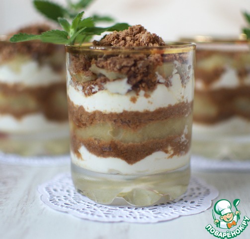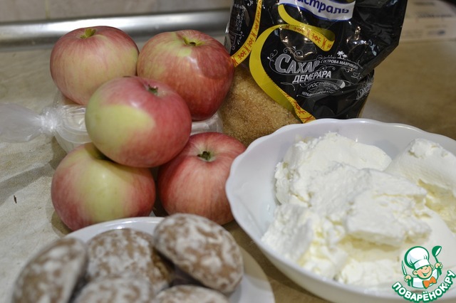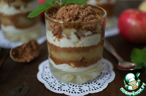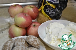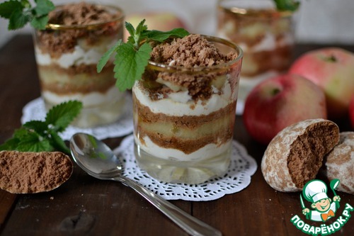 Собираем десерт- творожный крем, пряники, яблоки, пряники, крем, пряники, яблоки, пряники. Можно закончить кремом, но у меня он просто закончился.
