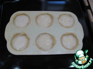 Ложкой разлить смесь по формочкам- почти до самого верха. Аккуратно поставить противень с тарталетками в разогретую до 180* духовку, на 20-30 минут. Время зависит от вашей духовки. Поскольку у меня формочки глубокие я пекла 40 минут.