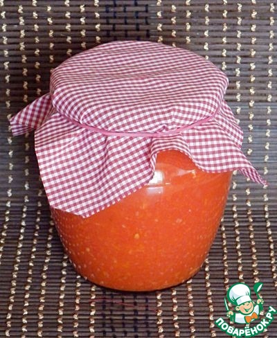 Перелить овощное пюре в кастрюлю соль, сахар, масло, молотые перцы. Доводим до киперия и варим, помешивая 30 минут. -