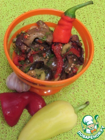 Баклажаны соединить с нарезанным перцем, зеленью и чесноком, добавить соль по вкусу, лимонный сок и специи.
