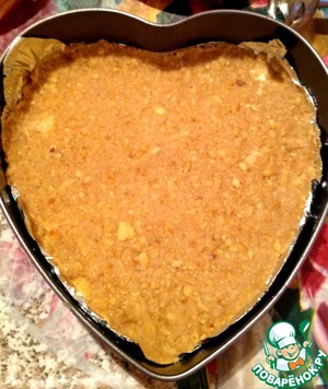Форму с массой из крекеров отправляем в духовку разогретую до 190 градусов и выпекаем 6-7 мин. Время может быть чуть меньше - зависит от формы, но как увидите румяные края- готово.