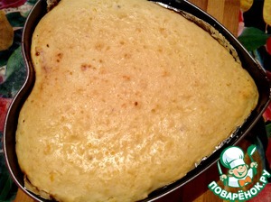 Достаете форму и заливаете лимонную начинку и продолжаете выпекать еще около 20 мин до образования аппетитной золотистой корочки.