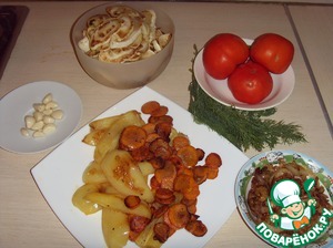 Обжаренные овощи, помидоры, чеснок, укроп пропустить через мясорубку со средней решеткой