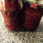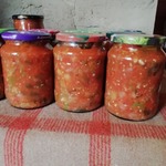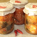 Эта вкуснейшая закуска приехала ко мне из волгоградских степей, баночкой сей замечательной заготовки угостили моих соседей по даче, а потом любезно прислали и сам рецепт. Как вы понимаете, на селе не сильно заморачиваются дотошным взвешиванием продуктов, поэтому рецепт был в штуках, которые я для вас перевела в граммы. Этот рецепт для тех, кто любит мало уксусные закатки. Заготовка прекрасно хранится при комнатной температуре.
