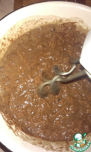 • В меньшей миске взбиваем миксером яйца, сахар, какао-порошок и гашеную соду.