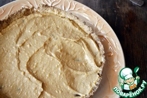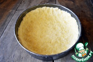 Высыпаем получившуюся крошку в разъемную форму (у меня 20 см в диаметре), предварительно смазав ее сливочным маслом, и руками формируем дно и бортики для будущего тарта.